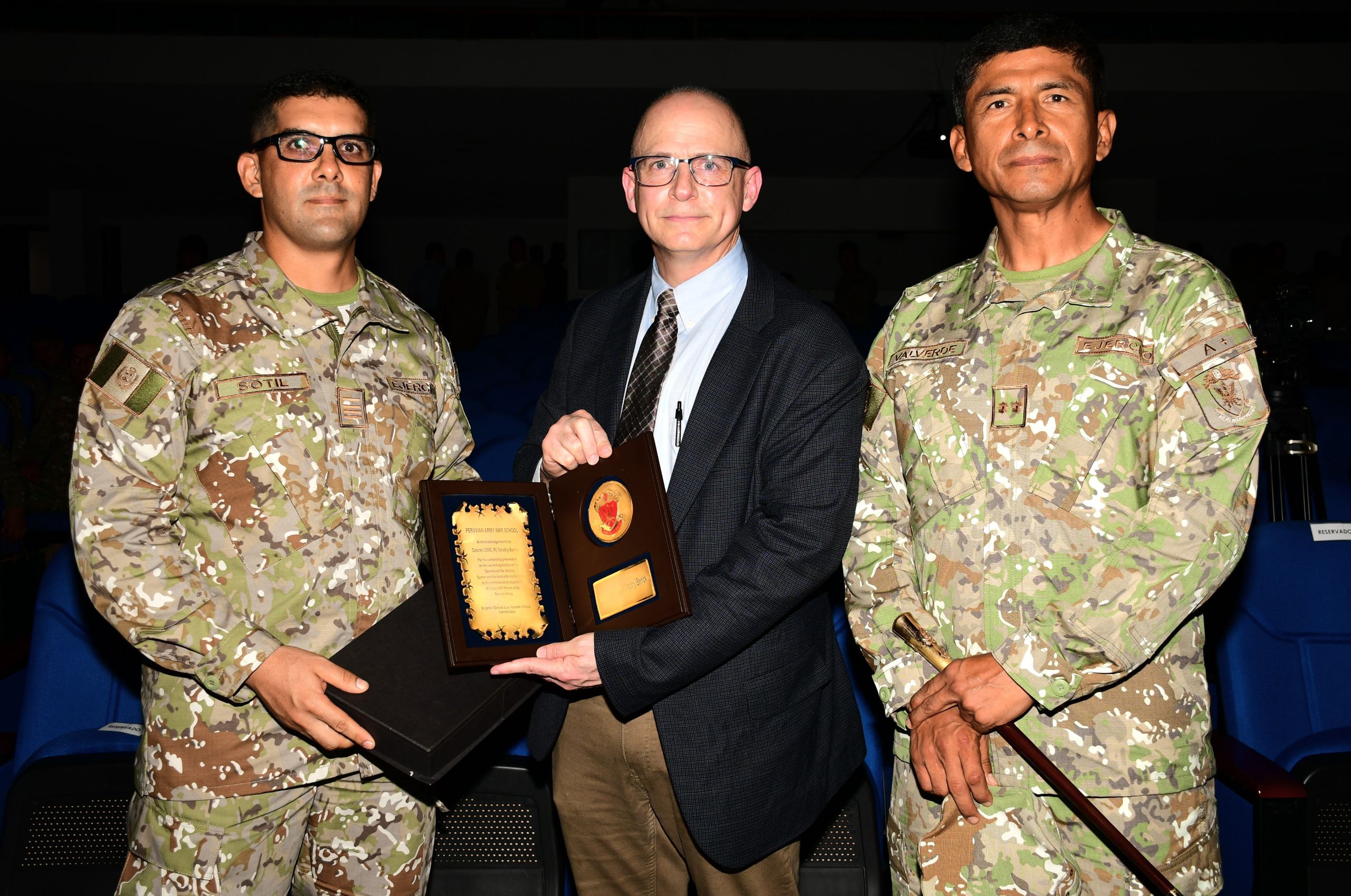 Durante su disertación, realizada el 4 de marzo en el auditorio de la Escuela Naval del Perú, el Coronel Barrick brindó sus amplios conocimientos a los Oficiales estudiantes de los programas Comando y Estado Mayor, y Alto Mando Naval; así como a los Oficiales estudiantes invitados de la Escuela Superior de Guerra del Ejército, junto a su Director, el General de Brigada EP Juan Kenneth Valverde Virhuez.