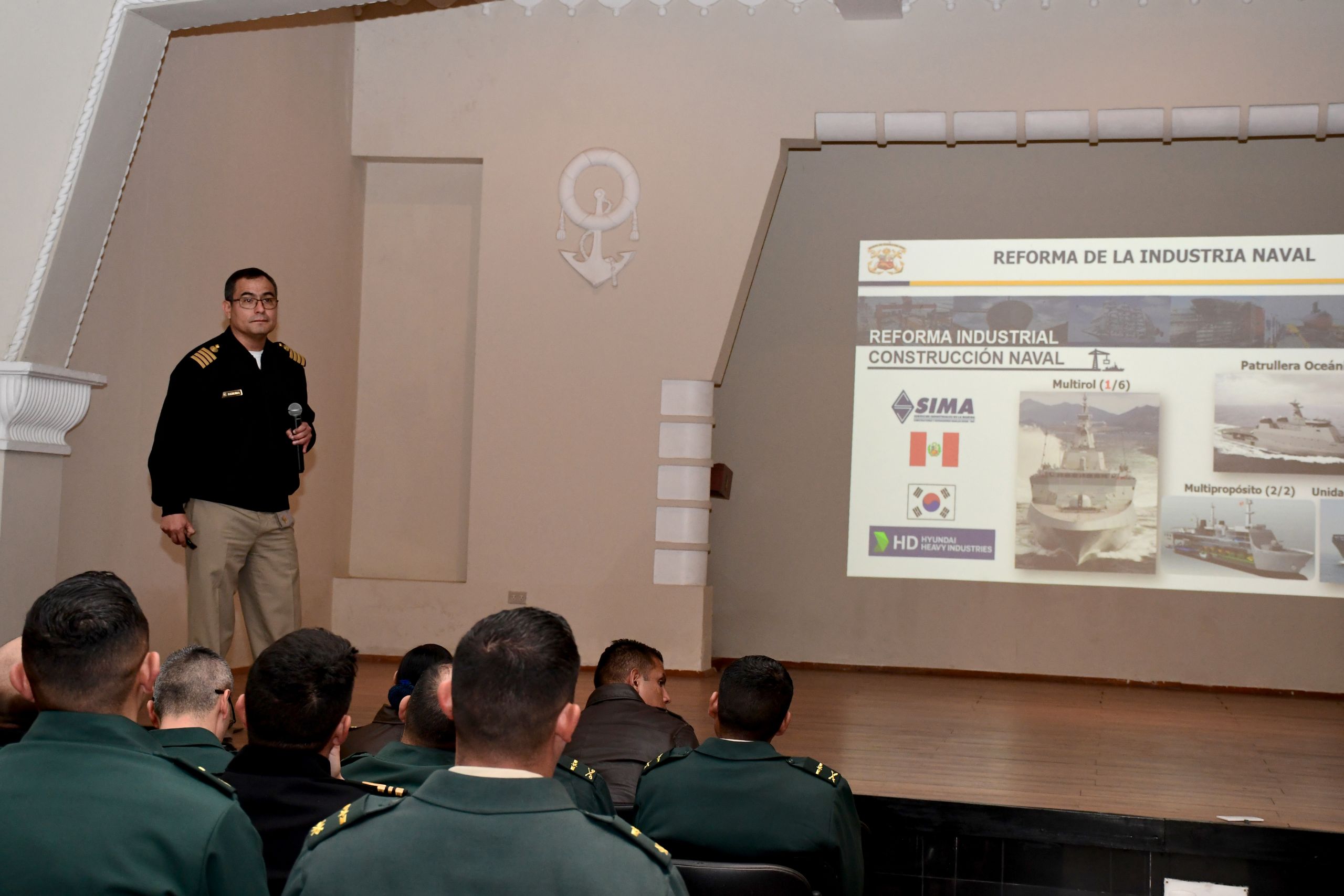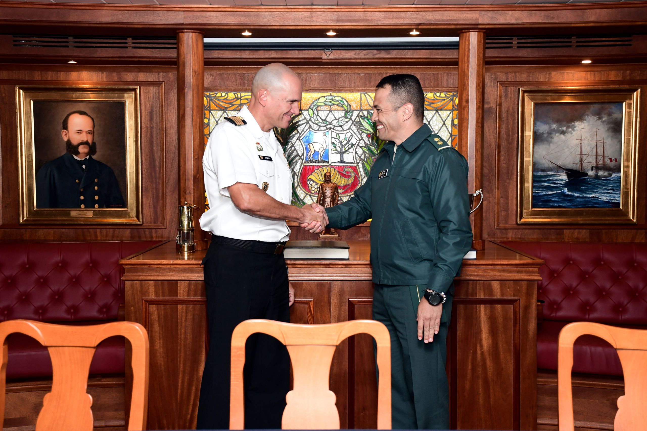 Durante su estadía fueron recibidos por el Contralmirante Luis Del Carpio Azálgara Director de la Escuela Superior de Guerra Naval, quien les expuso respecto a la misión de la Marina de Guerra del Perú, así como de las diferentes actividades profesionales y académicas que se realizan en nuestra casa de estudios.