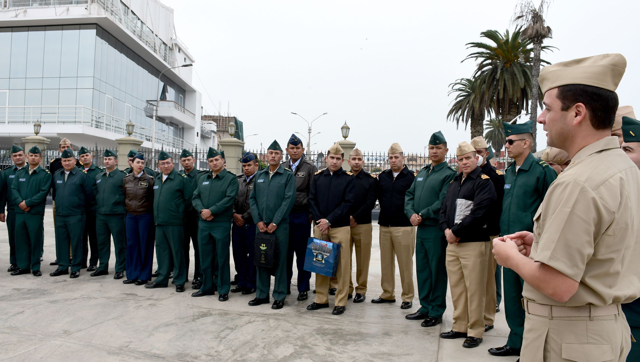 En el contexto de su práctica geoestratégica internacional, el lunes 27 de mayo se recibió la visita de una delegación compuesta por 60 oficiales del Curso de Estado Mayor de la Escuela Superior de Guerra de Colombia “General Rafael Reyes Prieto”, la cual estuvo presidida por el Brigadier General Yor William Cotua Muñoz, Comandante de la Vigésima Séptima Brigada de Selva, quien estuvo acompañado por el Agregado Naval de Colombia en el Perú, Capitán de Navío Diego Francisco Bautista Medellín