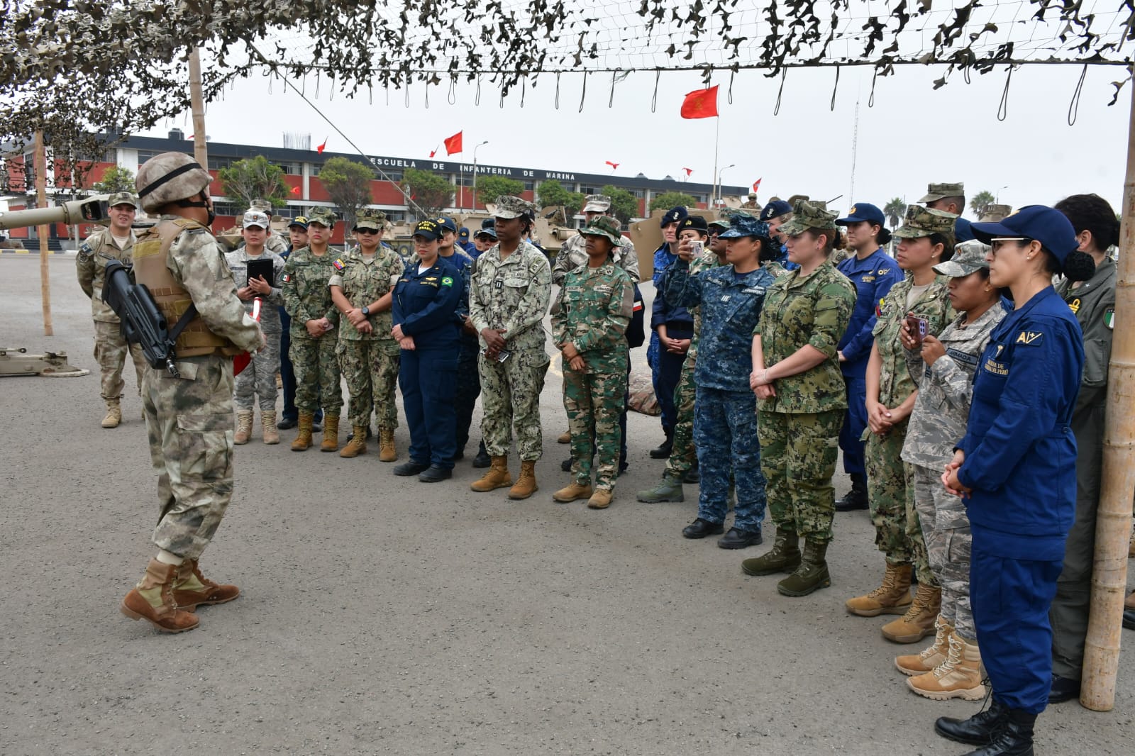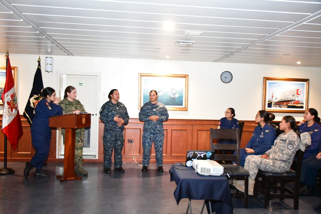 Las delegaciones tuvieron la oportunidad de hacerse a la mar y tomar parte en actividades de entrenamiento a bordo del B.A.P. «Pisco». Durante su estadía en esta unidad anfibia, las oficiales realizaron jornadas de exposiciones e intercambio de experiencias sobre el proceso de integración de la mujer en nuestras respectivas Marinas.