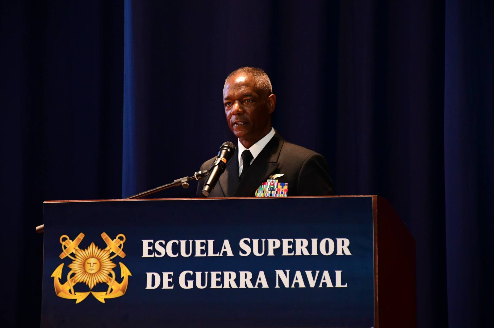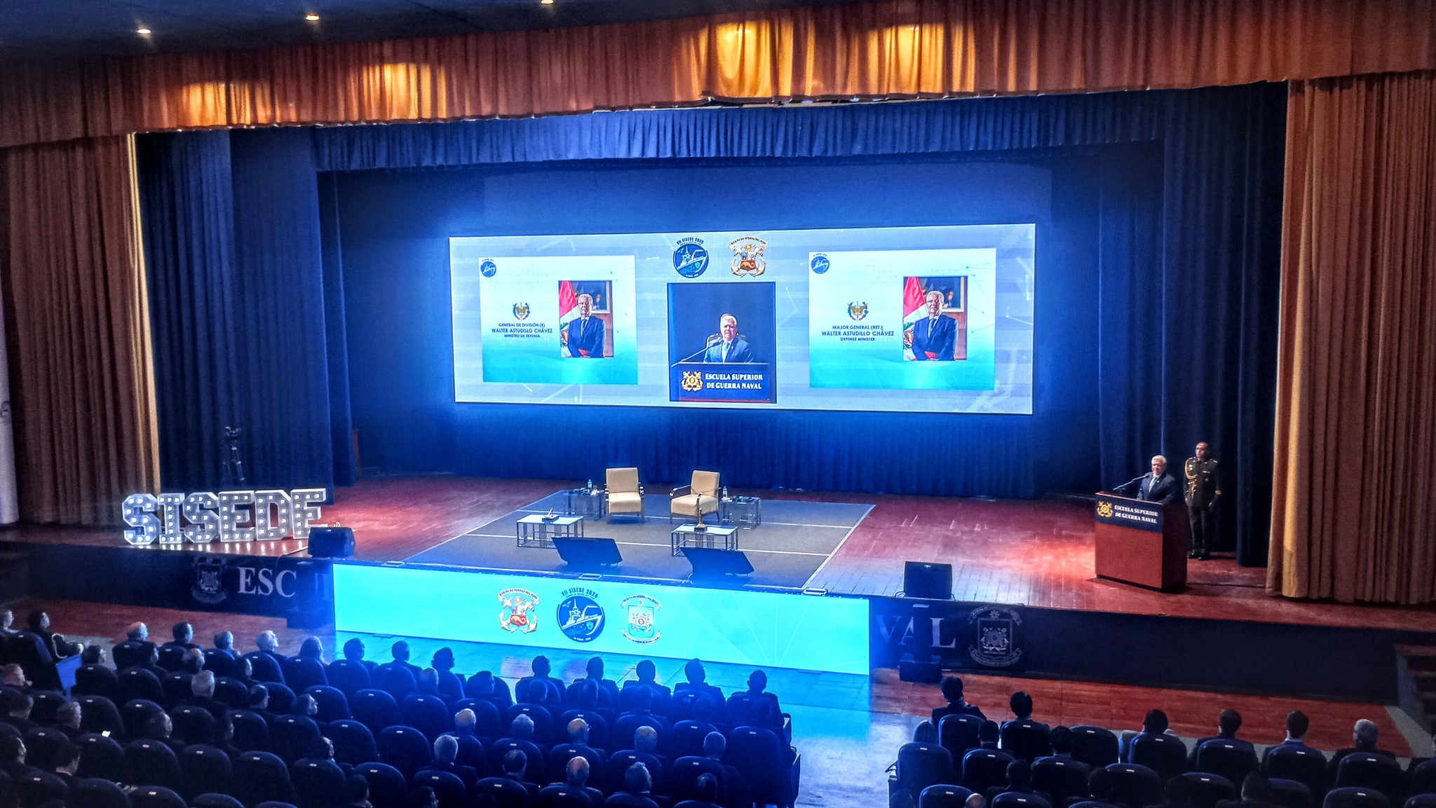 La ceremonia de inauguración fue presidida por el Ministro de Defensa, Walter Astudillo Chávez, quien estuvo acompañado por el Comandante General de la Marina, Almirante Javier Bravo de Rueda Delgado, además de representantes de las Fuerzas Armadas, diplomáticos, académicos y líderes del sector defensa.