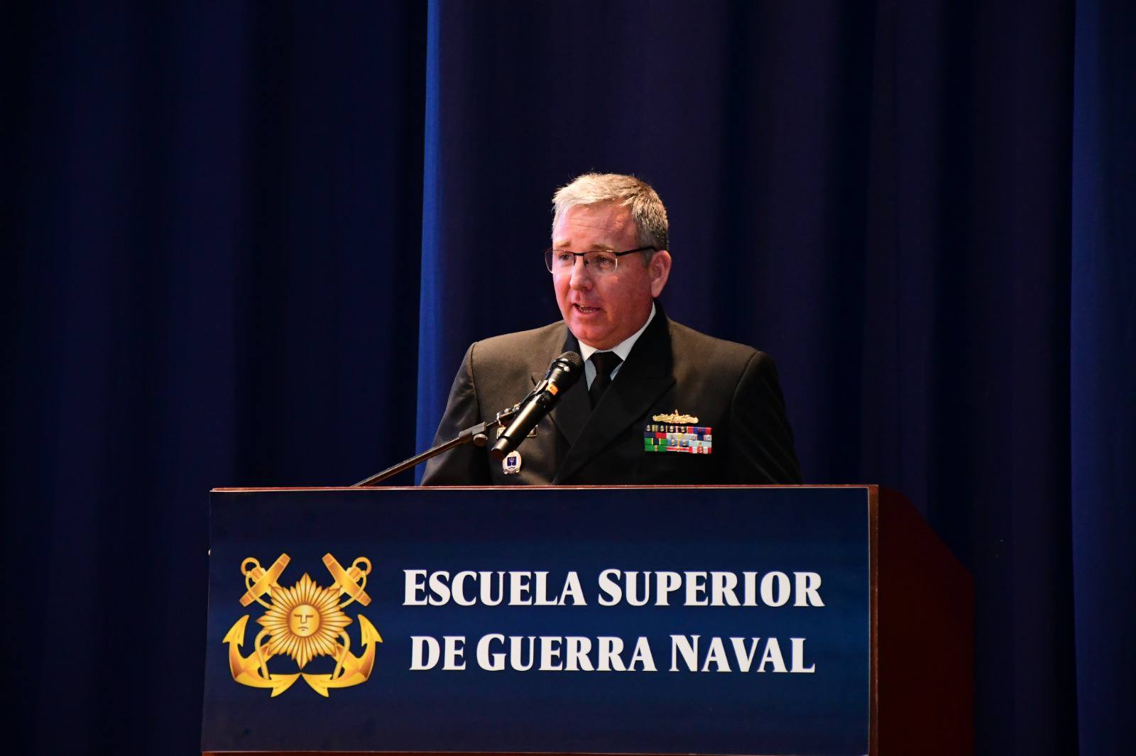 El 18 de septiembre, el simposio abordó los desafíos actuales en el ámbito académico y estratégico. El Panel 4.A, Retos de la Educación Militar Superior, fue moderado por el Contralmirante Kurt Bottger Garfias, Director de la Escuela Superior de Guerra Naval. Participaron el Contralmirante USN Darryl Walker, Presidente de la Escuela de Guerra Naval de los Estados Unidos, quien disertó sobre “Cómo la educación militar prepara a los combatientes de hoy para disuadir y, de ser necesario, ganar guerras”, y el Vicealmirante ARA Juan Carlos Romay, Director de Educación de la Armada Argentina, con el tema “Abordaje de la educación militar superior para un mundo en constante cambio”.