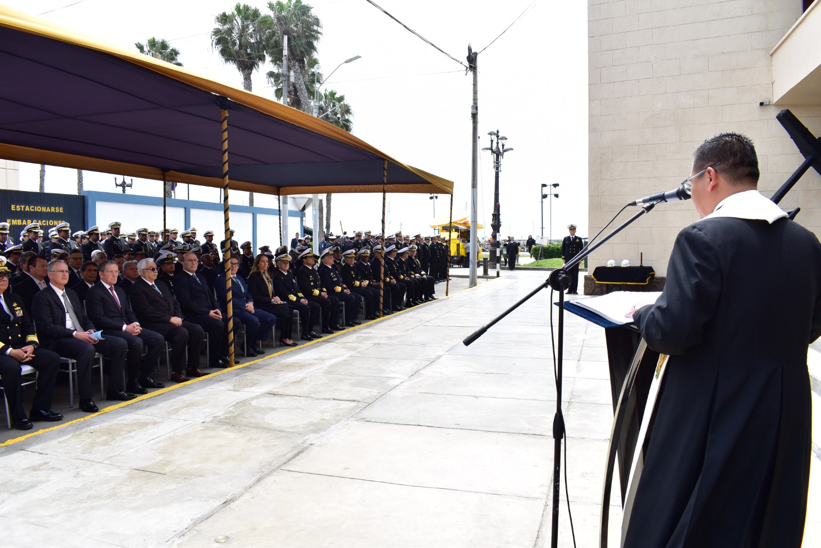 A continuación, se celebró una acción litúrgica en agradecimiento por los años de servicio institucional, a cargo del Capellán de la Escuela Naval del Perú, Padre Jimmy Cayo Tello Suyón.