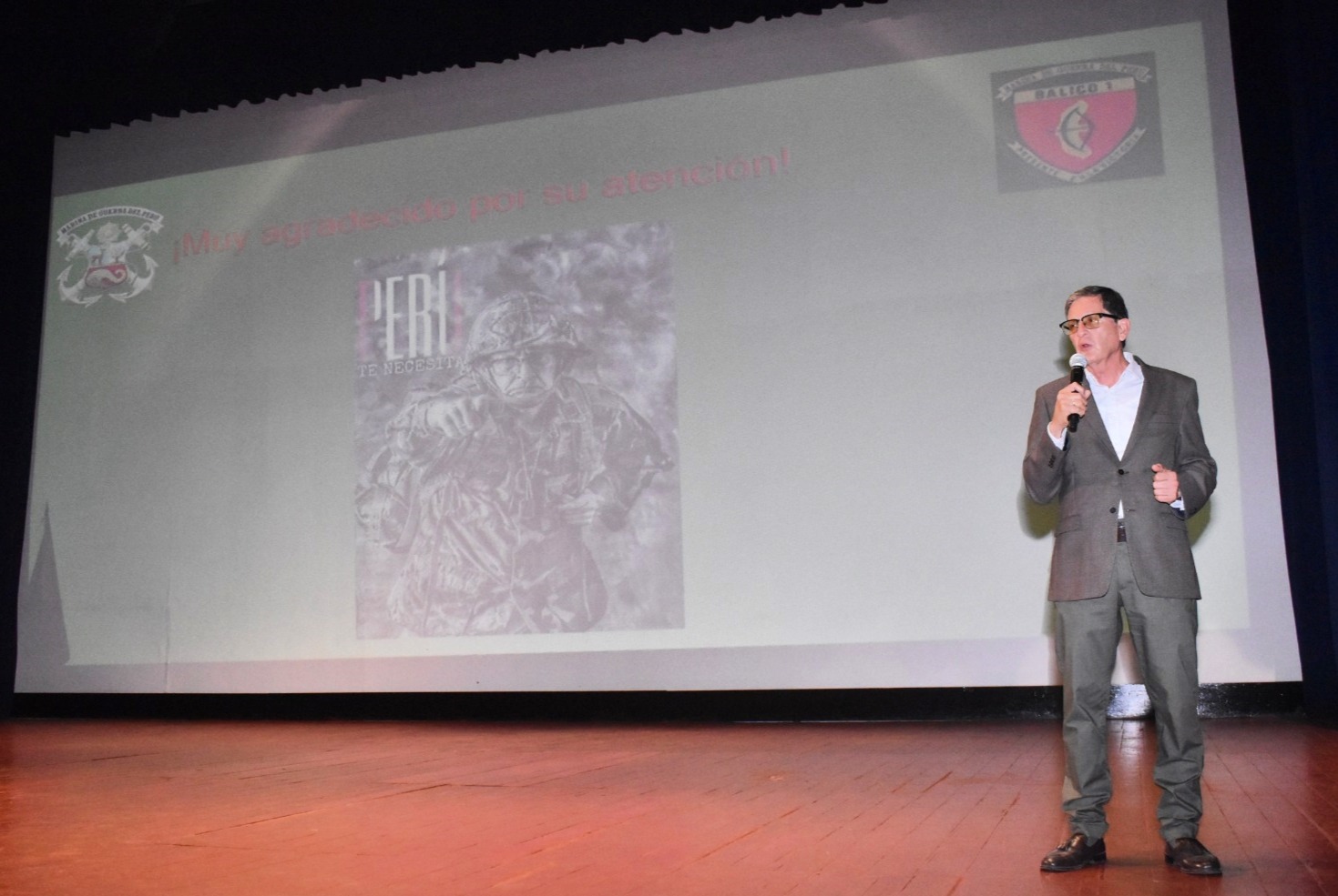 Como parte de las actividades de conmemoración del 35° aniversario de creación del Batallón Ligero de Combate N°1 (BALICO I), se realizó una conferencia dirigida a los oficiales de los diferentes programas de la Escuela Superior de Guerra Naval, y oficiales alumnos de los programas de Segunda Especialidad Profesional de la Escuela de Especialización Profesional de Oficiales, misma que estuvo a cargo de excombatientes que integraron esa unidad. La mesa de expositores estuvo presidida por quien fuera el primer comandante del BALICO I, Contralmirante (r) Gino Lavarello Rodríguez.