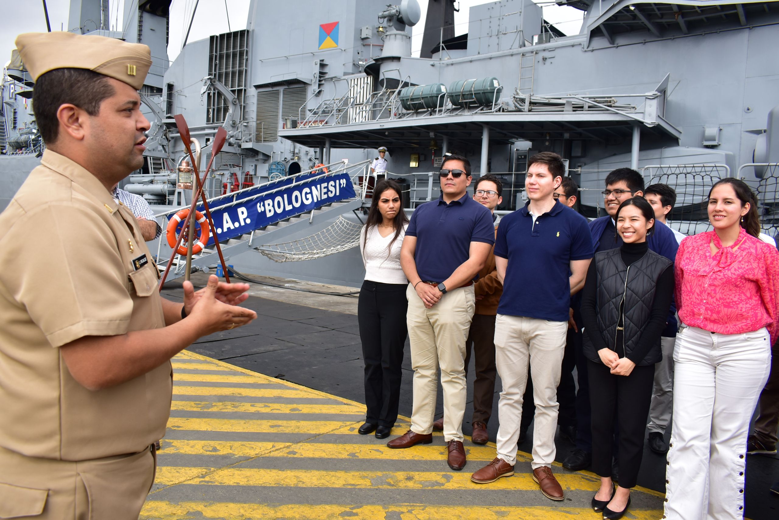 Con la finalidad de conocer mejor a su Marina de Guerra, en particular en su rol estratégico de apoyo a la política internacional, alumnos de la Academia Diplomática del Perú «Javier Pérez de Cuéllar» visitaron en la Base Naval del Callao las instalaciones del SIMA-Callao, la Comandancia de Operaciones Guardacostas, así como las unidades a flote, B.A.P. «Carrasco», B.A.P. «Pisco» y B.A.P. «Bolognesi». Visitas profesionales que sin duda contribuirán a la formación integral de los futuros funcionarios del servicio diplomático de la república.